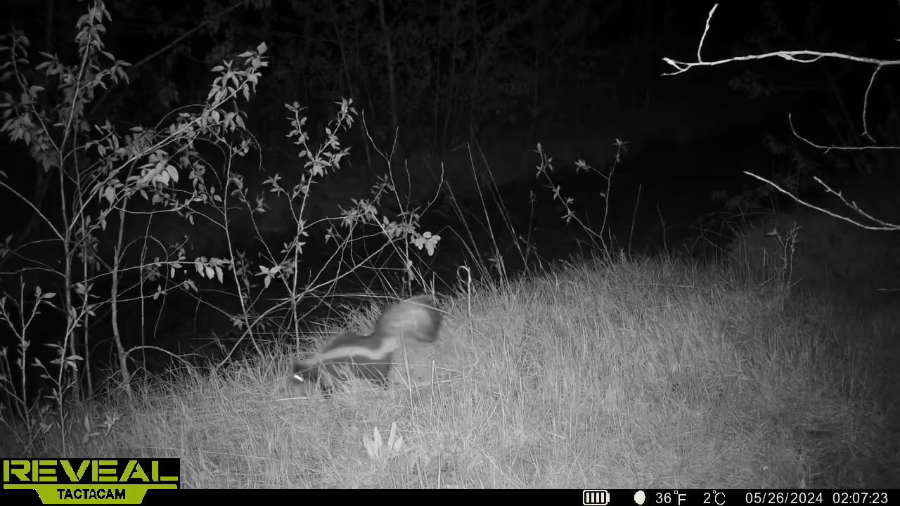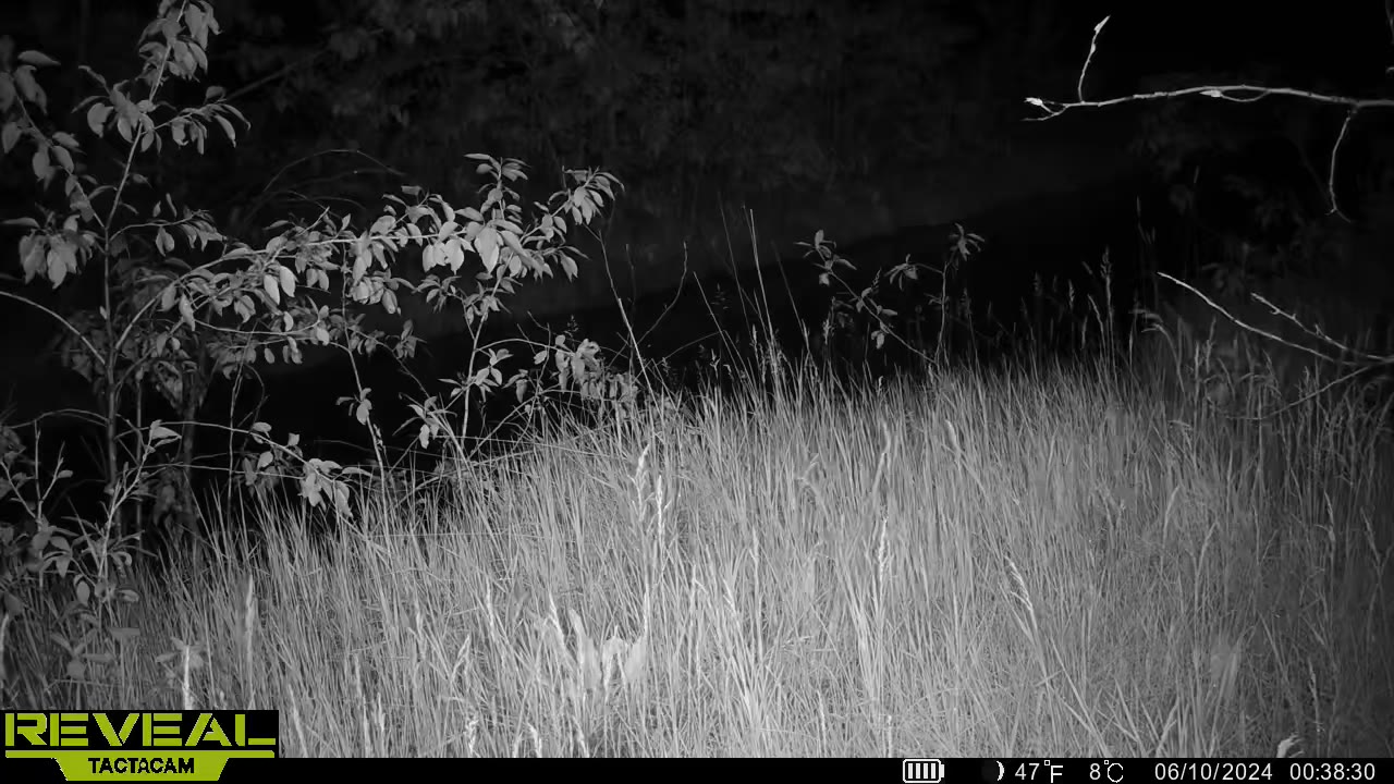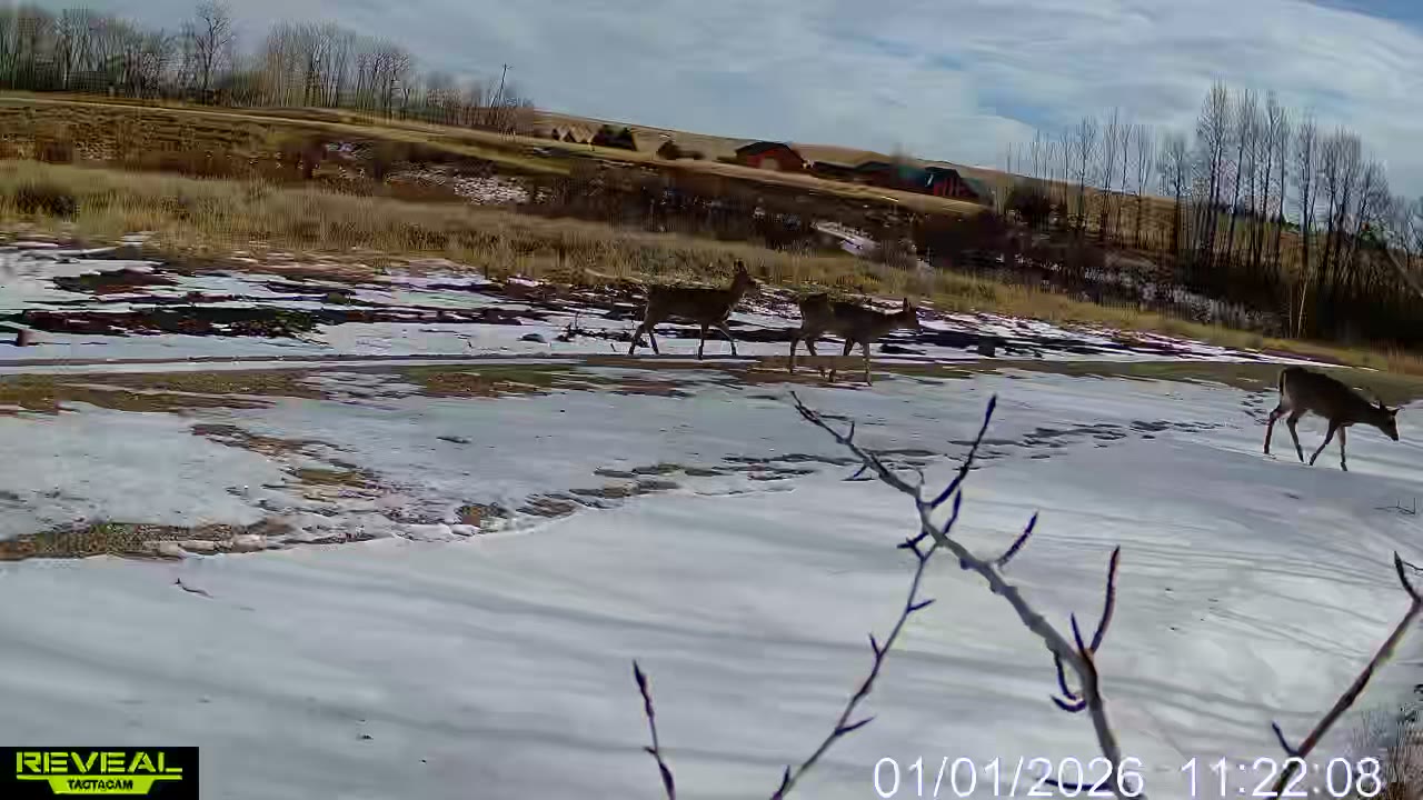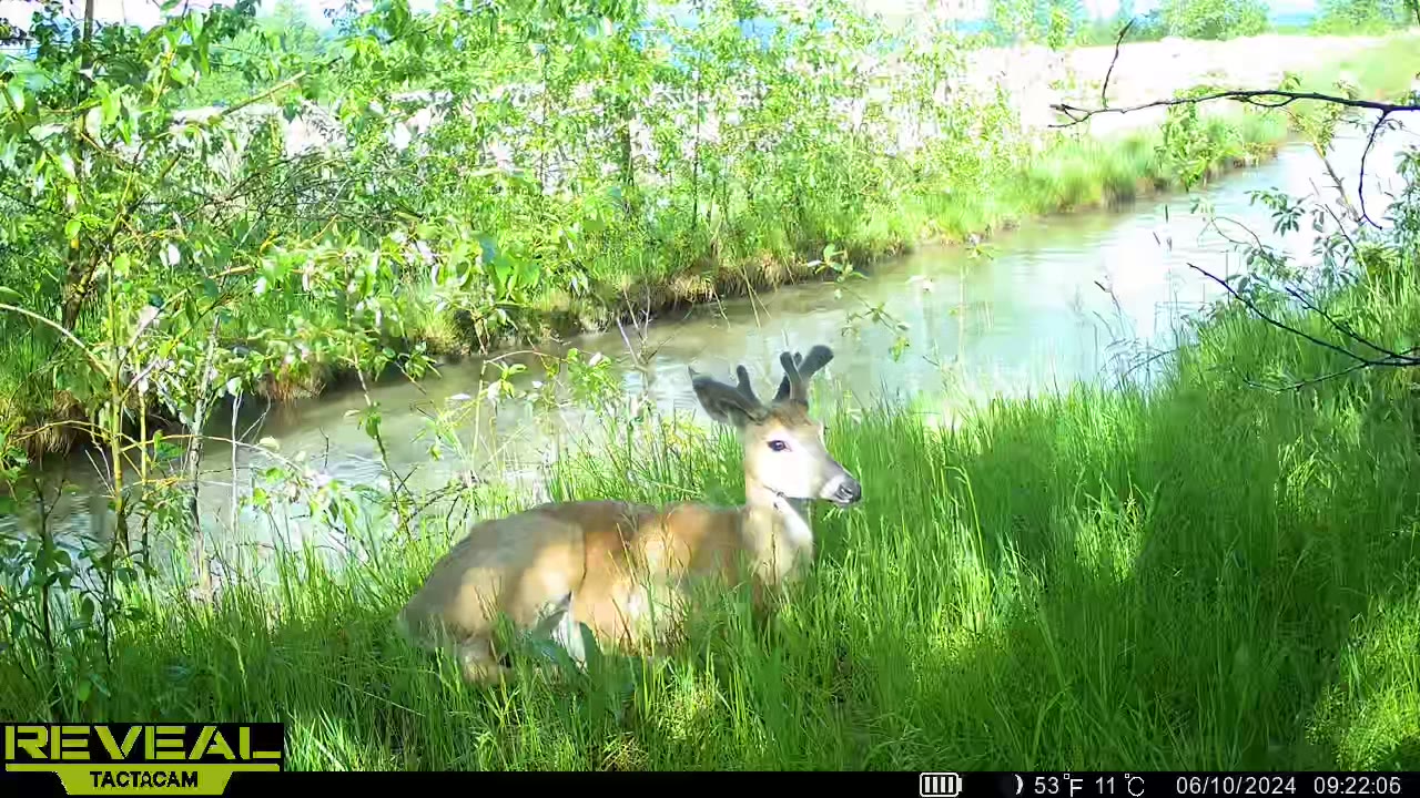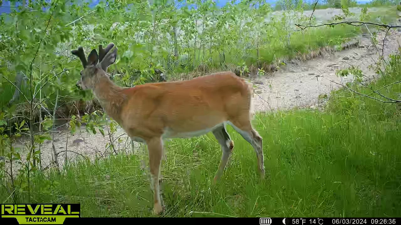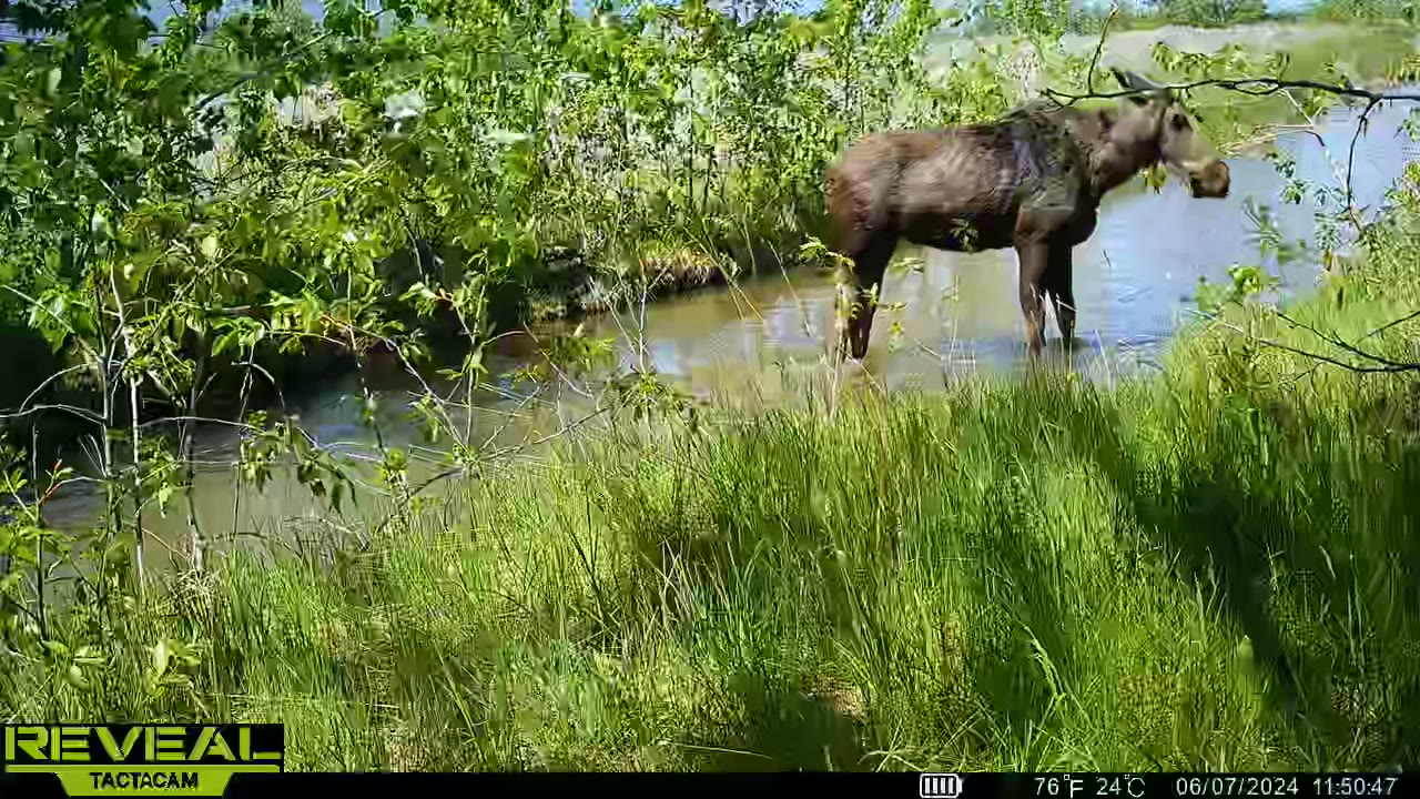 A trail camera has been running on the bench since spring 2024. Whitetail and mule deer most days, red fox and coyote most weeks. Moose, black bear, and mountain lion rarer. These are a curated sampling.